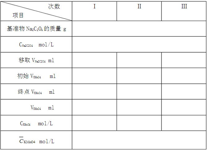 KMnO4 固體 Na2C2O4 固體 1:3 H2SO4( 取l體積濃度為98%的濃硫酸,慢慢加入到盛有3體積水的燒杯中,攪勻。)